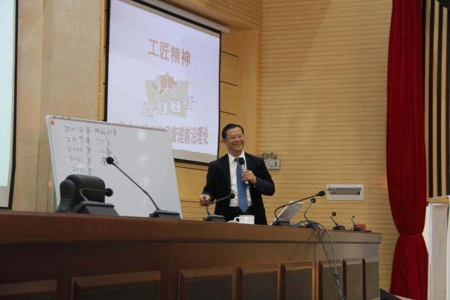 为进一步弘扬工匠精神,感悟和践行工匠精神,丰富校园文化内涵。我院于2017年11月27日下午两点在南院报告厅举行了“明道讲坛系列讲座之‘工匠精神’”的知识讲座。本次讲座我院有幸请到中国改革发展战略研究院院士、香港国际皇家社会科学院院士、中国管理科学研究院高级研究员、博士生导师罗云威教授担任主讲,讲座由乔副院长主持,我院各系领导、老师及近600余名学生代表到场学习。