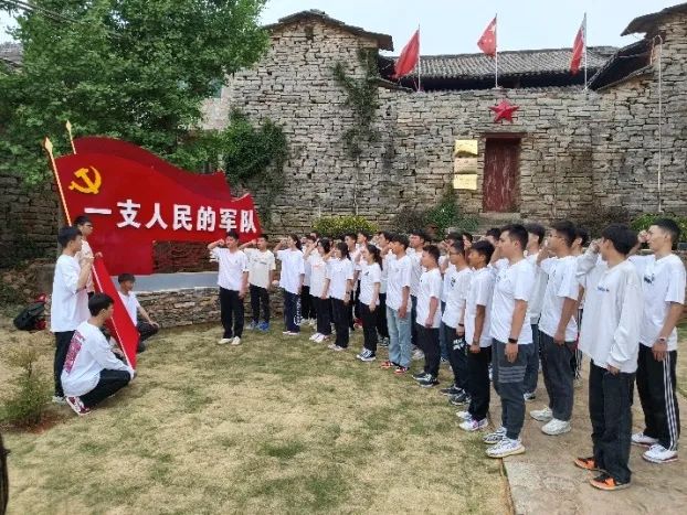 参加活动全体人员首先来到富有红色遗址之称的糯黑村进行参观学习,糯黑村也是彝族撒尼传统文化保存较完整的典型村寨。在讲解员的带领下,支部党员和同学们参观了少数民族特色村寨,了解民族特色和历史沉淀的古老民俗和传统。在糯黑村边纵司令部旧址和糯斗村一支人民的军队驻地遗址老鸦箐石洞及纪念碑前,机车车辆学院党员教师重温了入党誓词,全体团员重温了入团誓词。