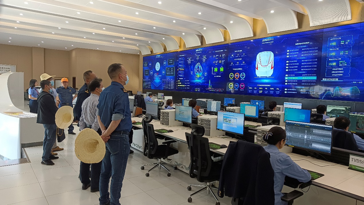 张志宏书记在昆明车辆段党委书记马劲松、段长周立陪同下参观昆明车辆段生产调度指挥中心