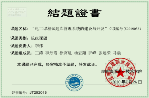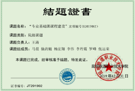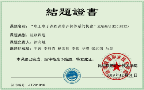 2019.04 云南省电工电子技能大赛优秀指导教师三等奖。