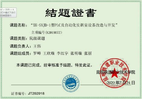 2021.01 云南省维修电工技能大赛高职组指导教师一等奖。