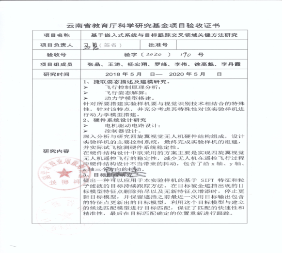 一个,校级课题五个、软件著作权一个,地厅级在研课题一个。