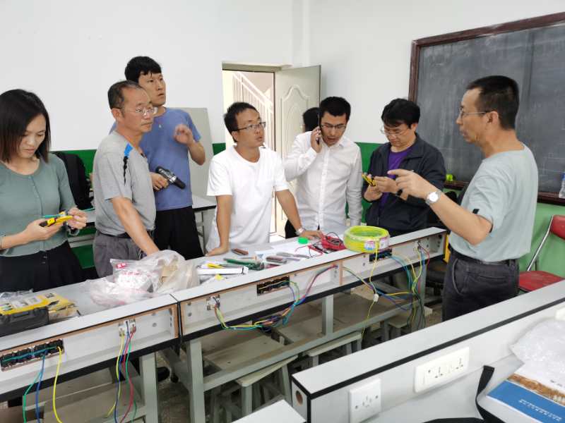 由于搬迁到位的实训设备需要及时恢复使用,每一间实训室的设备电路需要重新进行电路布置以及每一台设备的供电需要恢复,有大量的工作要做,在时间紧任务重的情况下,团队成员在杨宏翔、王涛、罗峰的组织带领下完成了四间电工实训室电路布线设计、电路恢复以及设备维修,共计3000多个接线点的连接,100多个搬迁引起的故障维修,在较短的时间内恢复了设备的正常运行,使实验实训得以正常的开展。