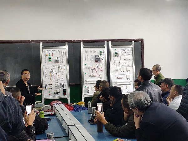 低压电工考核板制作完成后,先后应用于昆明铁路局职工低压电工取证培训、复证培训、校内学生低压电工取证培训等(图4),由于采用实物培训低压电工的取证实操,能直观看到老师操作,能实际动手练习考题,有问题的地方老师现场讲解纠错,学员普遍反映易学易懂,接受度较高,年纪较大学员也能学会,取得了学员一致好评。从2020年10月至今累计培训企业员工七期283人,成功取证274人,取证率96.8%,累计培训学生六期393人,成功取证356人,取证率91%。低压电工考核板应用效果显著,极大提升了培训效果。