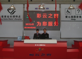 学生在昆明火车站参加社会实践 学生在昆明地铁参加志愿者服务