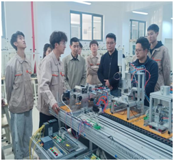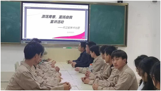 为了丰富同学们的课余生活,开阔同学们的视野,提升专业学习意识,锻炼实践能力,不断提高同学们综合素质。机之韵学术社在赵永洁老师的精心指导下于2023年12月14日下午16:00在天佑楼举行了以“激荡青春,宣扬自我”为主题的实训室宣讲活动。本次活动主要组织社团成员对天佑楼102电气安装与维修实训室、106西门子可编程控制实训室、107供电一体化实训室、110自动化生产线实训考核装备实训室四间实训室进行了宣讲,活动有幸邀请到机电工程学院书记张永明、副书记李兴迪亲临现场指导。