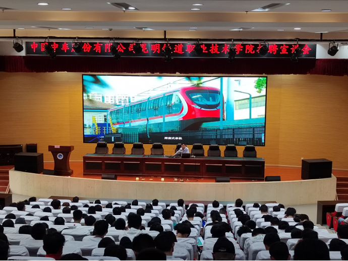 中国中车股份有限公司是全球规模领先、品种齐全、技术一流的轨道交通装备供应商。现有46家全资及控股子公司,员工17万余人。中国中车培训基地人力资源部招聘负责人通过播放公司宣传片、PPT展示等方式向同学们介绍了公司产业结构、规章制度、企业文化、职业发展方向、福利待遇、人才需求及校企合作培养模式等基本概况,并现场解答了同学们的疑问。最近中国中车金华地铁维保检修、上海地铁维保检修、贵阳中车等都有招聘员工需求宣讲结束后,同学们根据自己的意向报名,后续企业将根据报名情况组织学生面试、订单组班培养。