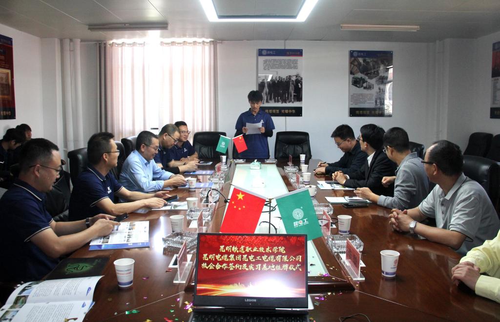 5月18日,新葡萄与昆明电缆集团昆电工电缆有限公司举行了校企合作签约仪式暨校外实践教学基地挂牌仪式。学校党委委员邹建斌部长,机电工程学院党支部张永明书记及相关辅导员和教师代表,昆明电缆集团公司总裁、昆电工公司总经理高洪昆,昆电工公司副总经理、制造中心总经理左福祥及相关人员共同出席签约暨挂牌仪式。公司综合部副部长段勇主持会议。