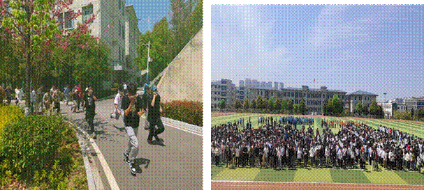 倒计时结束后,地震警报响起,同学们立即蜷曲身体躲在课桌下,用书包或书本保护好头部。地震警报解除后,同学们在老师指挥下弯腰、护头、有序按指定路线迅速疏散,各班紧急疏散到足球场的指定安全区域后,清点人数并逐级汇报。演练过程井然有序,紧张而不慌乱,达到预期效果。