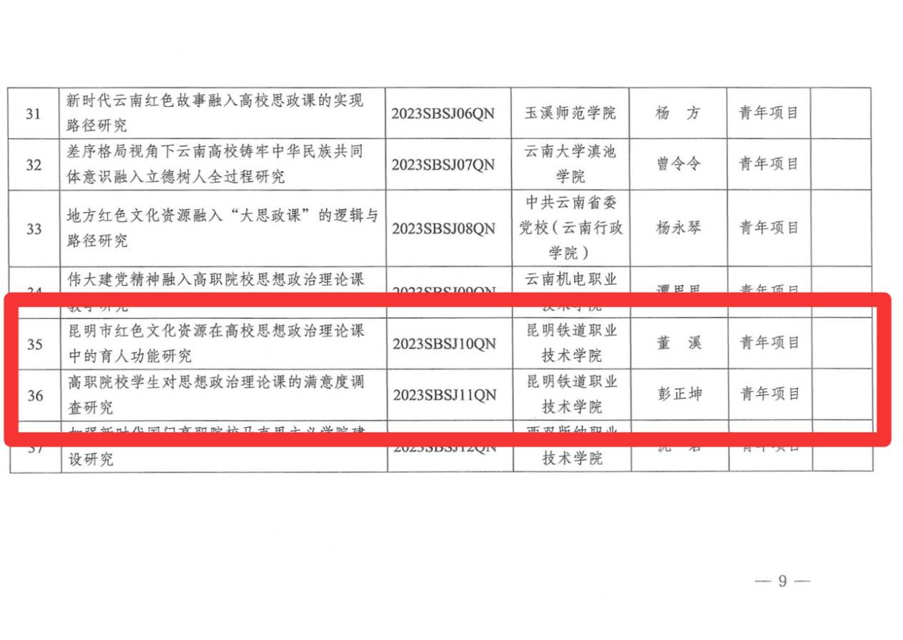 【喜报】马克思主义学院两名青年教师成功获批2023年度云南省“双百双进”活动调研项目