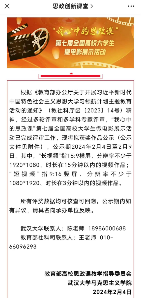 近日,“我心中的思政课”第七届全国高校大学生微电影展示活动获奖结果公布,新葡萄报送作品《山间里的“小慢慢”》荣获长视频组三等奖。