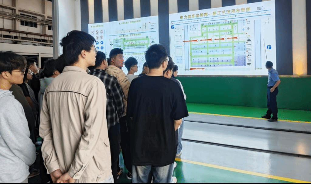 在实地参观515人才工作室、电力中修库大厅、调度质检站的过程中,工作人员对每一个站点的作用及操作规程做了详解地介绍,学生们通过亲身感受,进一步了解了机务段精检细修工艺标准、科技创新小改小革成果、检修库电子电器及制动阀件标准化规范化检修流程。