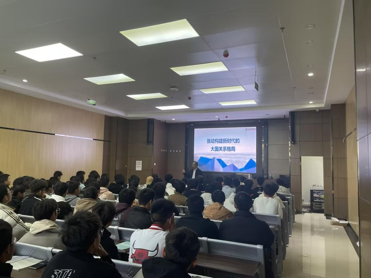 王树华书记以“推动构建新时代的大国关系格局”为题,围绕当前动荡变革的世界局势、全球瞩目的热点问题、大国风范的外交政策三个方面,循序渐进、深入浅出地阐释了当前严峻的国际形势,及中国应对国际热点问题的原则立场和外交的战略部署,以清晰的逻辑主线引导师生认清形势,把握中国立场,坚定理想信念,强化责任担当,坚定不移地把个人的使命与国家的命运紧密联系在一起。