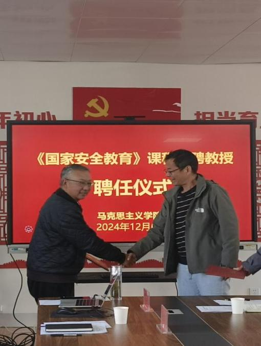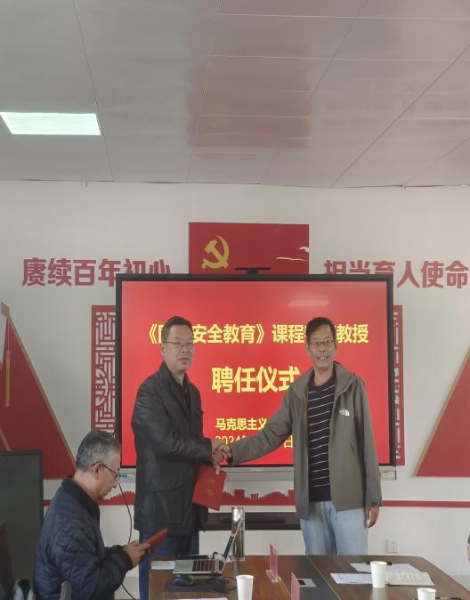 三是为推动新葡萄AMG官方网站国家安全教育教研室建设和发展,提高教学实效性,聘请普卫明老师担任马克思主义学院《国家安全教育》课程特聘教授,聘请杨定坤老师担任马克思主义学院《国家安全教育》课程指导教师,由马克思主义学院党支部书记饶坚向两位老师颁发聘书。
