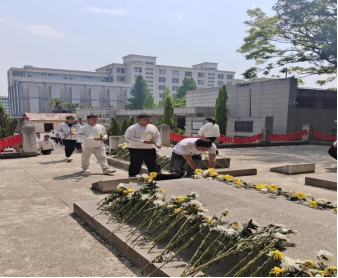 全体学生怀着无比崇敬的心情列队瞻仰了闻一多先生衣冠冢和四烈士墓,向烈士默哀、行鞠躬礼敬献鲜花,以寄托对革命烈士的无限哀思,表达对革命烈士的无限敬仰与怀念之情。