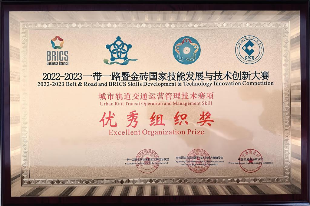 我院在2022-2023一带一路暨金砖国家技能发展与技术创新大赛城轨运营管理赛项全国总决赛中荣获优秀组织奖