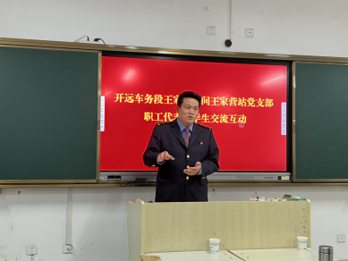上午,王家营站副站长何亚威站长带领站段优秀职工来到铁道运输学院。同老师、同学们观看了雷锋纪录片,随后职工们分享了工作经验,并深入交谈,对同学们当前在校阶段以及之后就业等方面的问题做了详细的解答,积攒了同学们即将面临就业的信心,明确了同学们之后的努力方向和目标。