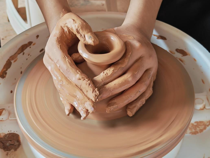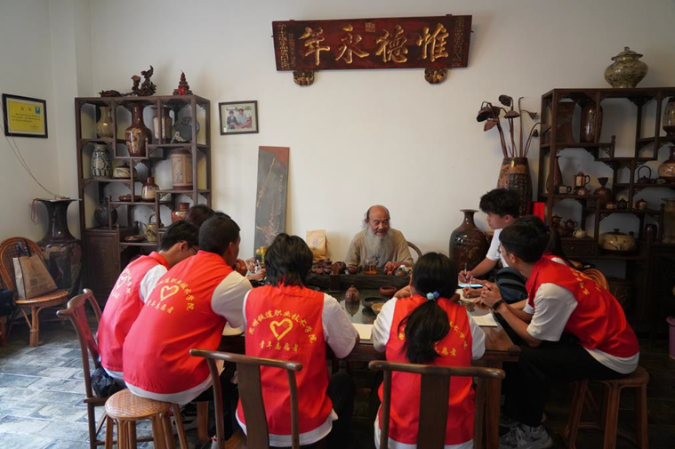 2022年12月,习近平总书记对非物质文化遗产保护工作作出重要指示,要扎实做好非物质文化遗产的系统性保护,更好满足人民日益增长的精神文化需求,推进文化自信自强。2008年,经国务院批准,建水紫陶烧制技艺被列入国家级非物质文化遗产名录。为深入了解传承千年的建水紫陶非遗技艺,实践团来到了绍康陶艺和谭知凡陶艺工作室,拜访了两位德高望重的非遗传人。在绍康陶艺的工作间团队成 员深入学习了紫陶的制作流程,从中了解到建水紫陶制作工艺繁多,细分有108道工序,每道工序都须做到认真细致。国家级非遗传承人陈绍康老先生告诉同学们,建水紫陶要进一步发扬光大,形成产业化,市场化是紫陶产业化的关键,而培养传承人,继承和创新紫陶工艺,则有利于促进市场化的健康发展。在与大国工匠谭知凡大师的交流中,谭老说道:“做陶第一要素就是要会挑土看土,做陶的有一句俗话‘生在颜料上,死在烧成上’,建水紫陶最重要的就是陶土,陶土的质量是重中之重,边做边实践,要有想法,打好基础,受益的是自己,无论学什么都是这样,基础不好去社会上能干什么”。在昌泰紫陶教学实践基地,团队成员亲身体验了制作紫陶的拉坯过程,指导拉坯的 老师告诉同学们:“拉坯成型,书画装饰和雕刻填泥都是建水紫陶的重要技艺,攻克这道道的难题,不能靠投机取巧,唯有‘勤’与‘恒’这两个字,它是需要勤奋的学习和持之以恒的练习。”经过寻访非遗文化,团队成员深刻感悟了非遗文化的独特魅力及非遗传承人的工匠精神。