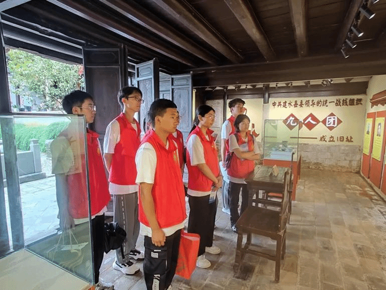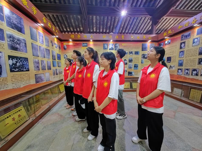 团队成员在团山村九人团纪念馆瞻仰历史图片