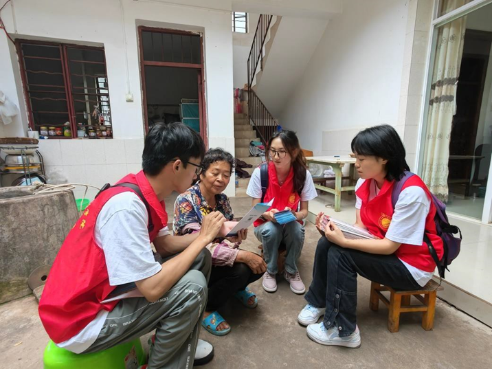 实践团成员走进新房村村民家里做预防电信诈骗的科普宣传