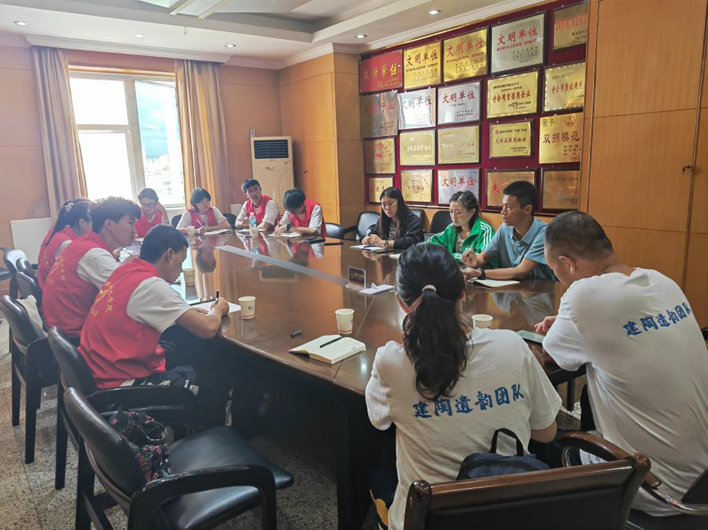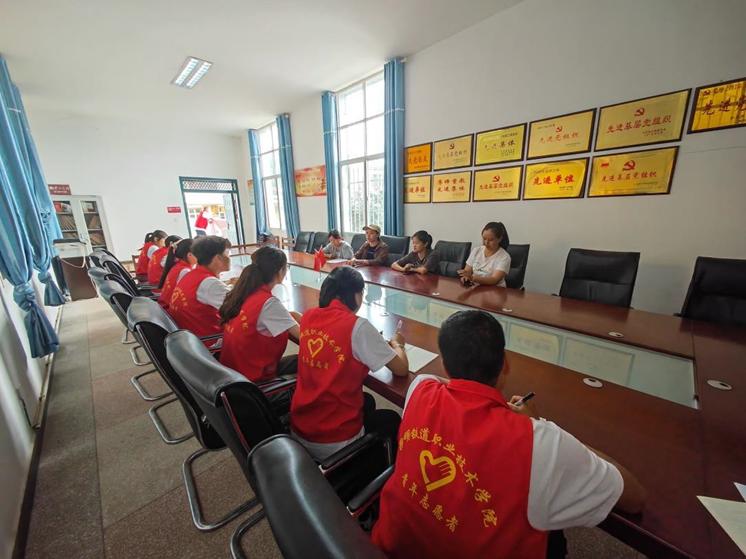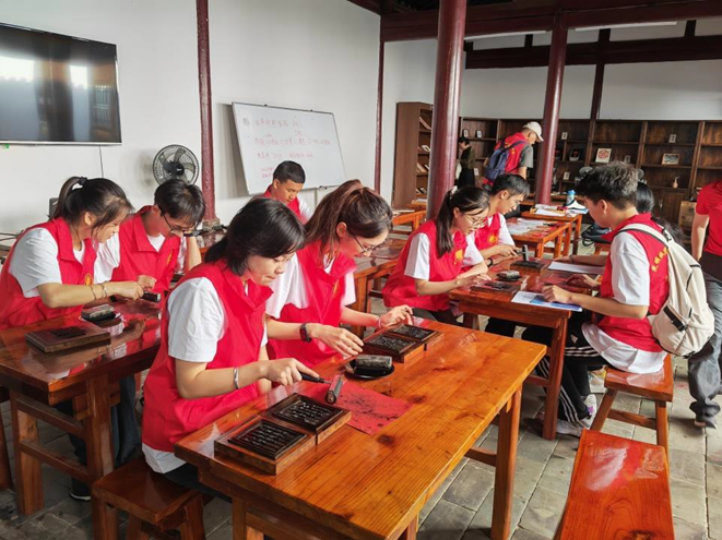 在西庄镇团山村村委会,实践团与村委会相关领导及工作人员座谈,了解团山民居当地经济情况,同时还请教了团山村地域文化与旅游融合发展的相关问题。在村委会培训教室,实践团成员带领当地小学生开展“团团陪伴,助力‘双减’”活动,为小学生讲解中华优秀传统文化,并为参与活动的小学生带去了文具用品和红色课外读物。