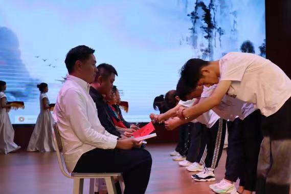 在拜师环节,学生郑重的向师傅鞠躬、呈拜师贴、敬茶;师傅对弟子提出殷切希望,导师们将根据行业企业需求制定和实施教学计划,在职业技能、职业精神和职业态度方面给予学生更多指导,确保所学知识技能与行业需求无缝接轨。