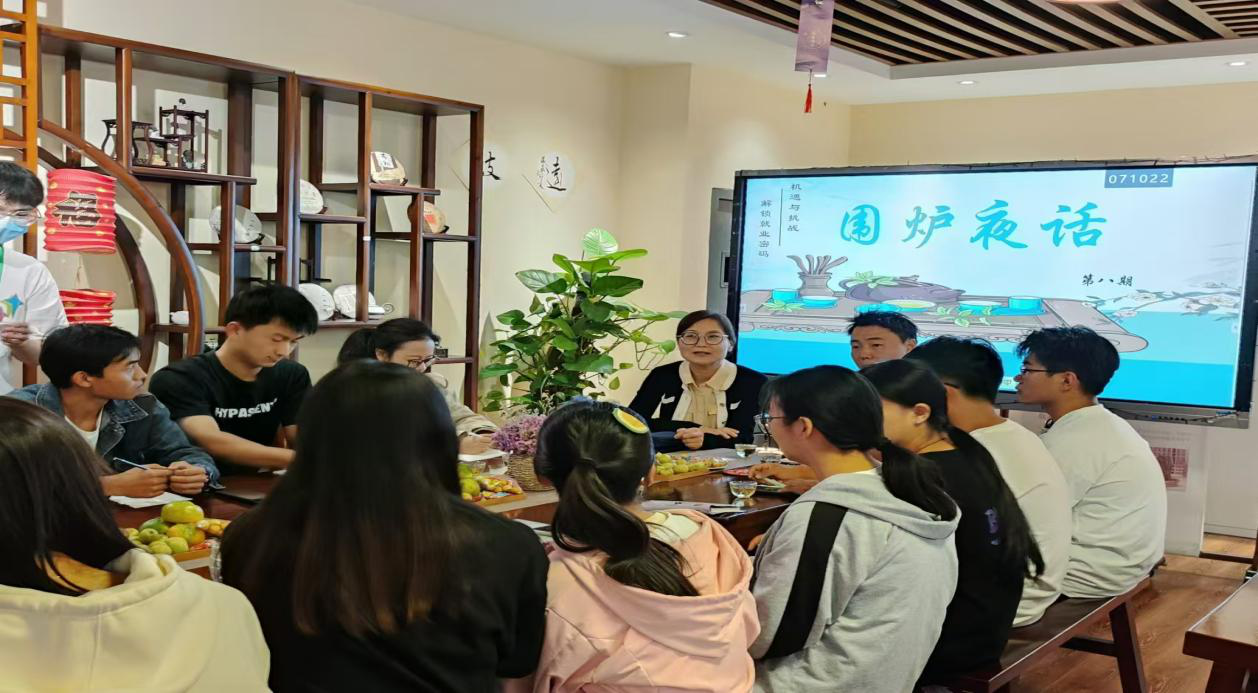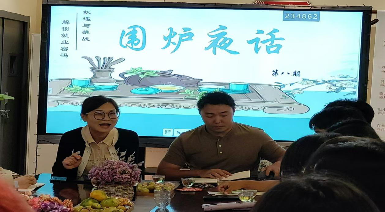 围炉夜话通过师生之间的交谈,来分享和诉说对于就业的困惑,从而探索解决办法。就业规划,是每一位学生实现自我人生价值的第一步,让他们在将来的学习生活中有明确的奋斗目标,向着这个方向继续努力,从而实现人生价值和目标。