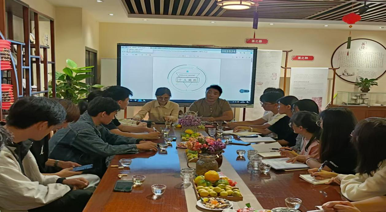 图为2024年9月9日同学们与老师们在503茶艺室进行交流