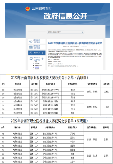 指导学生参加2022年云南省职业院校技能大赛电子商务赛项获得两项三等奖