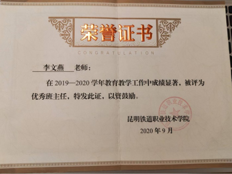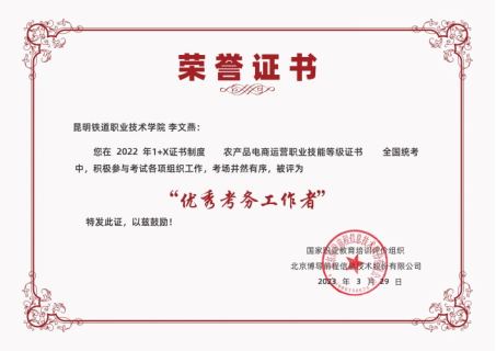 被北京博导信息技术股份有限公司评为1+X认证考试“优秀考务工作者”