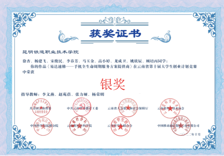指导学生参加云南省第十届大学生创业计划竞赛获得银奖
