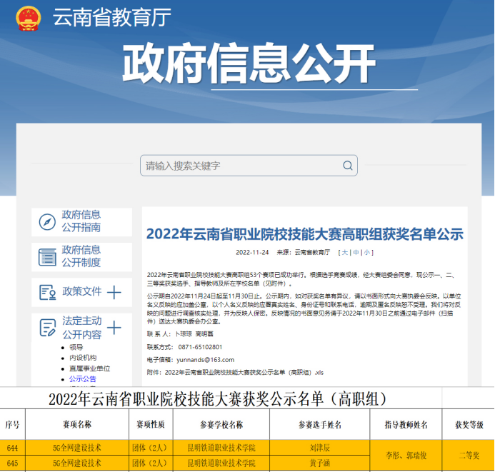 姓名:郭瑞俊 时间:2022年11月,指导学生参加《2022年云南省职业院校技能大赛5G全网建设技术》比赛获得二等奖。