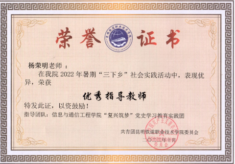 指导学生参加“2022年暑期三下乡社会实践”,荣获优秀指导教师。
