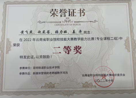 参加2022年云南省职业院校技能大赛教学能力比赛(专业课程二组)获得二等奖