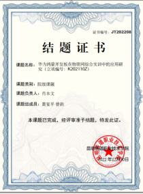 姓名:曾韵 时间:2022年12月,主持(参与)完成校级《华为鸿蒙开发板在物联网综合实训中的应用研究》课题。
