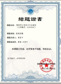 姓名:曾韵 时间:2021年12月,主持(参与)完成校级《物联网工程技术专业建设》课题。