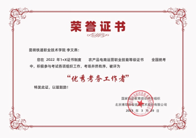 被北京博导信息技术股份有限公司评为1+X认证考试“优秀考务工作者”