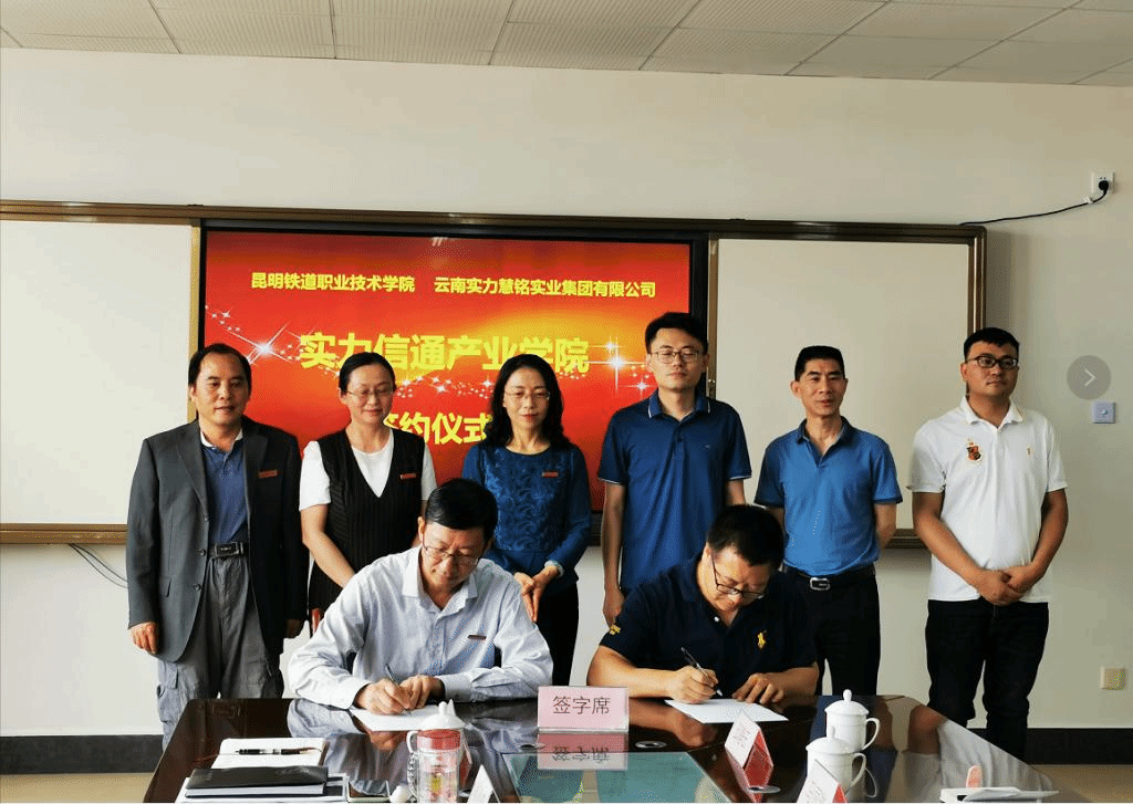信息与通信工程学院从2020年11月开始酝酿产业学院的成立,多方考察、几经论证,终于确定了与实力集团的合作。实力集团深耕云南,面向全国,涉足地产、文旅、服务、教育等多个领域,旗下教育板块与云南多家公办高校合作良好,是一家实力雄厚、品牌影响力大、有社会责任、有教育情怀的企业。双方合作成立产业学院——实力信通产业学院,从“电信服务与管理”专业开始合作。根据协议,双方对合作专业进行共建共管,以现代学徒制的模式校企共同培养人才。