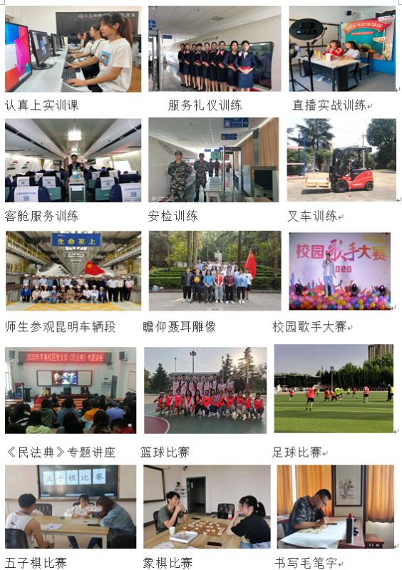 良好的校园环境、良好的实训设施,良好的学风教风,学生在校园中拥有众多的训练技能的机会和全面提高素质的机会,校园生活丰富多彩,青春飞扬,朝气蓬勃!