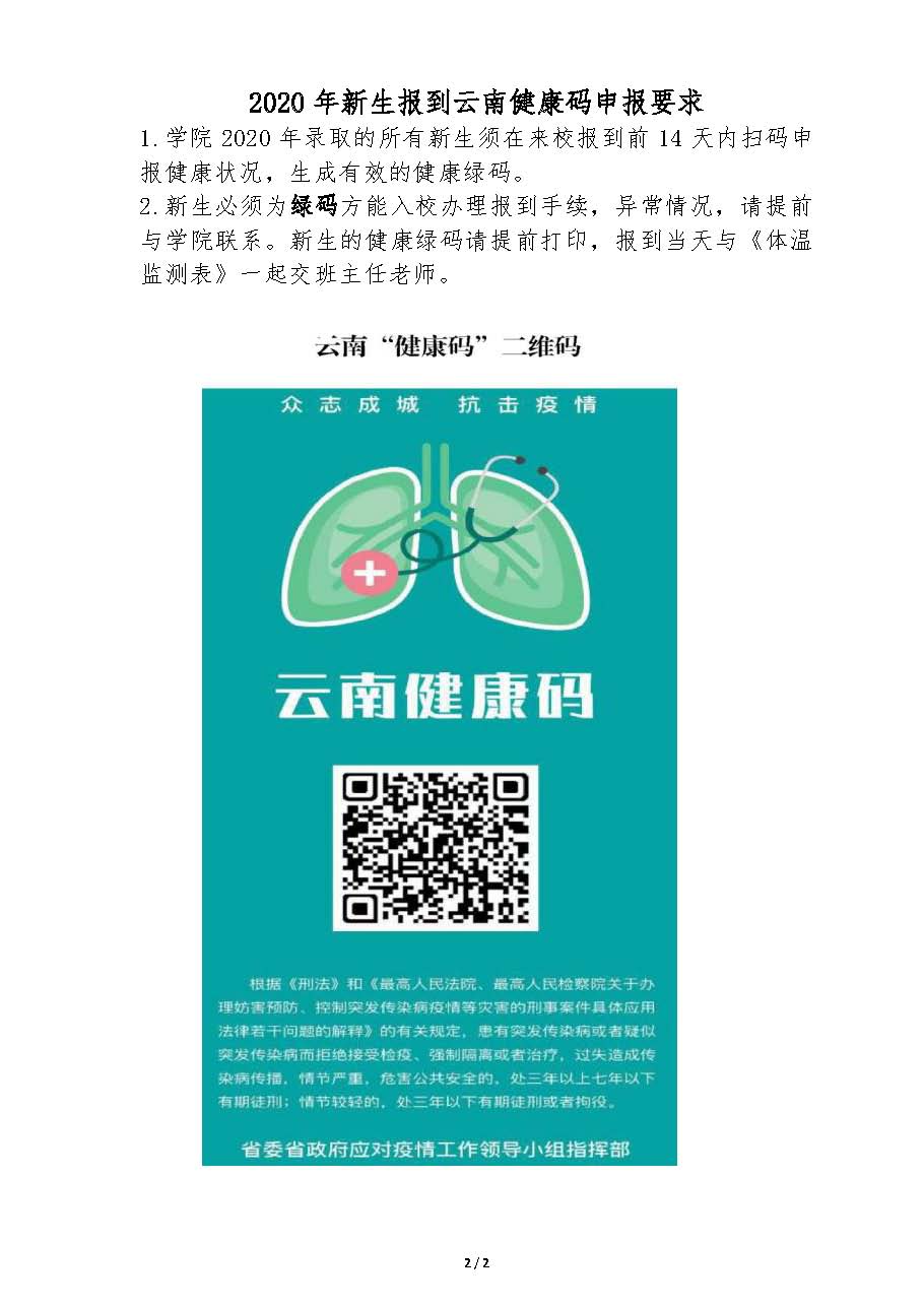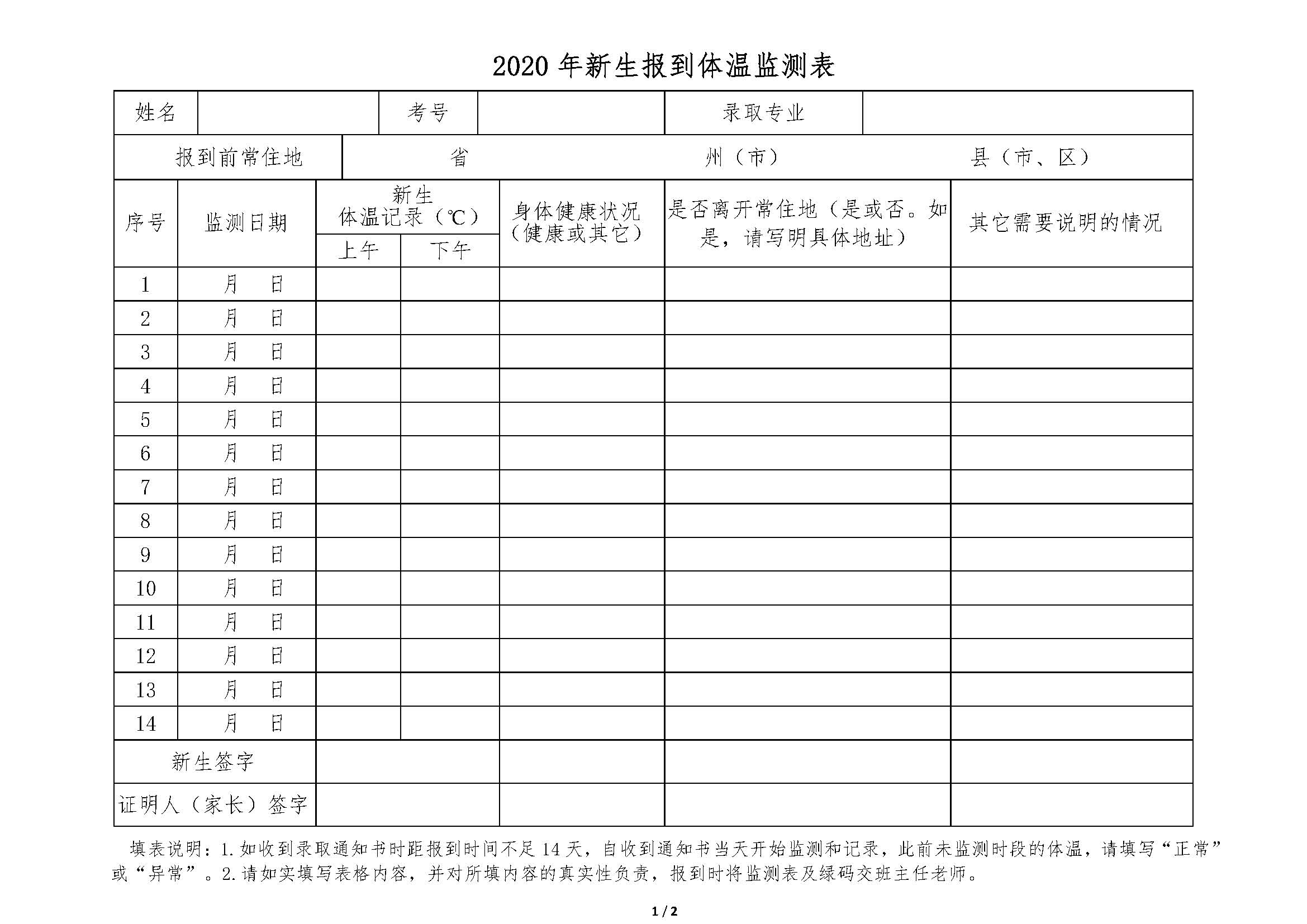 2020年新生报到体温监测表及健康绿码申报.pdf