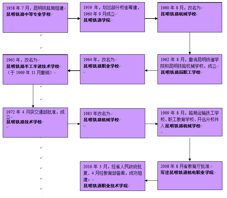 新葡萄AMG官方网站,源于云南省铁路修建通车运营而萌生,始建于1958年,随社会政治经济变革和铁路建设而成长。学院经过六十年的艰辛拼搏,砥砺奋进,教育质量不断攀升,办学实力稳步增强,社会影响日益提高,发展成为云南省唯一、西南地区办学历史悠久、资深权威的一所专门培养铁道类和轨道交通类技术技能人才的职业院校,积极为铁路和轨道交通行业培养了一批批优秀的技能人才。新葡萄AMG官方网站从诞生到壮大,是几代园丁在昆明东郊凤凰山麓宝象河畔辛勤耕耘的丰硕成果,是园丁们艰苦努力铸造的职教丰碑,它铭记着数以万计学子孜孜不倦、追求智慧与技能的史实,见证着云南铁路、轨道交通的建设、发展与辉煌。