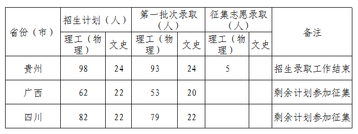 截止2023年8月15日,新葡萄按贵州、广西、四川招生考试委员会办公室(考试院)招生录取工作安排,已开展(完成)招生录取相关工作,具体信息如下: