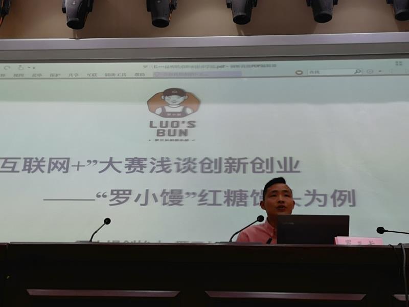 同为90后的罗三长为同学们讲述了自己的创业初心、创业历程以及创业感悟,也分享了参赛的经验总结和知识技巧,他幽默风趣的语言不时引得同学们的阵阵掌声,激发起了同学们创业的激情。同学们深刻感受到创业之路不易,应及早为自己的人生规划做好准备。此外,罗三长还介绍了自己创立的“罗小馒”项目,这是一个依托创新创业大赛平台成功起步的项目,鼓励在校大学生既要心怀梦想,仰望星空,也要制定目标,脚踏实地,为实现自己的梦想而珍惜时光、努力学习。