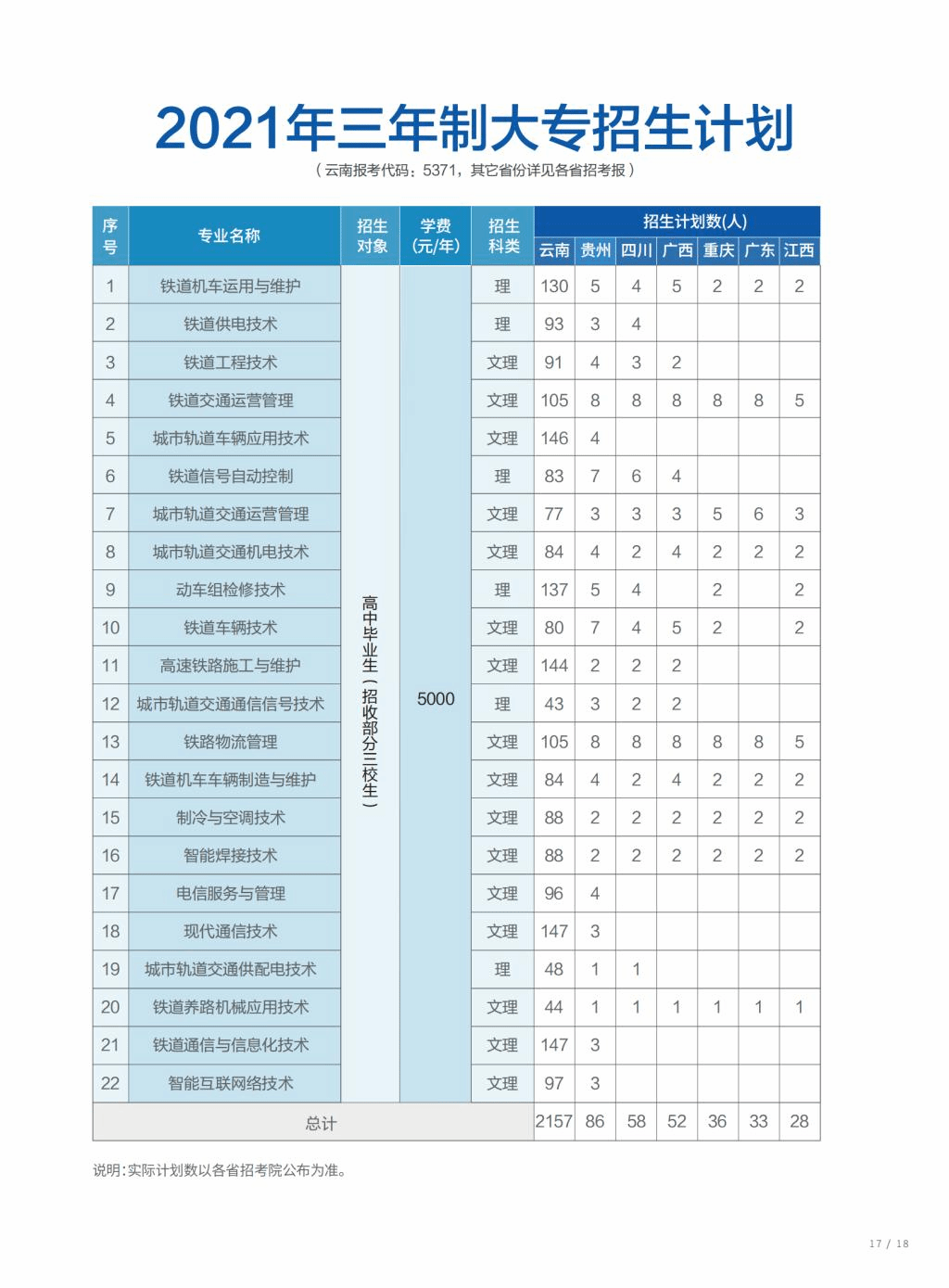 2021年学校三年制大专招生计划